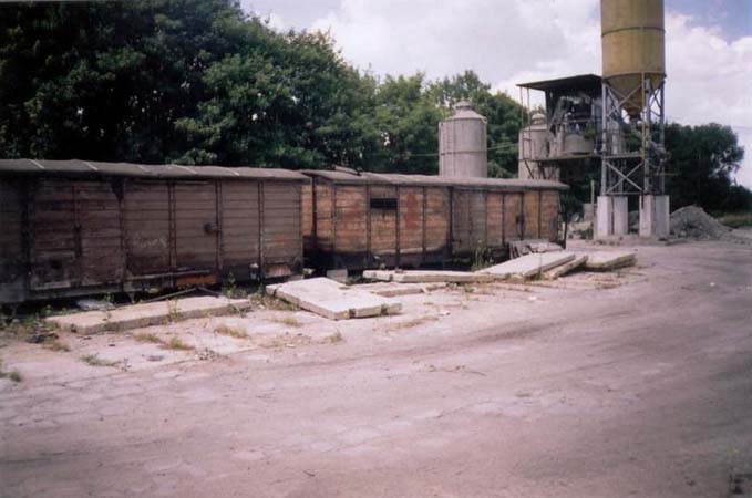 pozostałości po dawnej stacji Kazimierzy Wielkej, wagony obecnie pełnią funkcję baraków dla prywatnej firmy-czerwiec2003