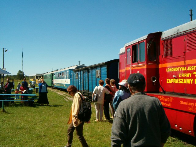 Po dotarciu na miejsce grała już muzyka, natomiast panowie maszyniści odczepiają lokomotywę i za chwilę popędzą w kierunku Hajdaszka w celu naładownia wciąż niesprawnych akumulatorów.