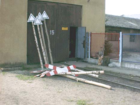 znaki przygotowane do ustawienia na szlaku, które już czekały obok garażu...