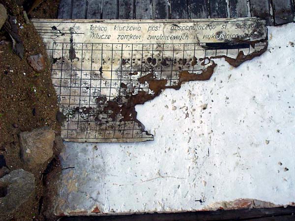 Jakimś cudem ocalał tu fragment tablicy kluczowej stacji Staszów, teraz żałuję, że nie pomyśleliśmy wtedy bo odkopać cały układ torów na tej stacji, ale może będzie jeszcze okazja.