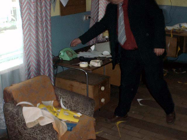 zaś w cieniu budynku stacyjnego pan prezes własnoręcznie wycinał już kolejne literki...