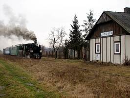 Czy wiesz że... Pajęczyn Dolny z „Syzyfowych prac" Stefana Żeromskiego to Skowronno. Tu urodził się Andrzej Radek, jeden z bohaterów tej powieści. W czasach Żeromskiego dwór w Skowronnie był jeszcze zamieszkały. „W spiczastej baszcie nowszymi czasy przystawionej do wiekowego dworu" mieszkał guwerner Paluszkiewicz zwany Kawką, opiekun A. Radka. - 29,2 km, w niewielkej odległości Kopernia - wieś położona na wschodnich stokach wzniesienia zwanego Koperskimi Górami. Stara, zabytkowa zabudowa Koperni objęta jest ochroną. To właśnie w Koperni ponad 750 lat temu podpisany został akt nadania praw miejskich dalekiemu miastu Kraków! - 30,2 km, stacja Pińczów. Po przejechaniu kilometra wzdłuż pierwszych zabudowań miasta Pińczowa docieramy w końcu do miejsca, gdzie spotykają się przebiegi dawnej Kolei Pińczowskiej prowadzącej unikalnymi serpentynami do przystanku Erdmanówka, ulokowanemu na szczycie Garbu Pińczowskiego i dalej do Hajdaszka oraz nowego szlaku od Umianowic z 1951 roku, którym właśnie przybyliśmy. Przebieg dawnej linii znaczą krzaki porostające ją na zboczu Garbu. Po kilkuset metrach mijamy z prawej dawną parowozownię PKD wykorzystywaną teraz przez leśników i wjeżdżamy na równię stacyjną stacji Pińczów. Tu niestety kończy się już nasza wycieczka - przynajmniej w jedną stronę. Dalszą podróż sentymentalną do Wiślicy uniemożliwiają nam nieprzemyślane ludzkie dycyzje, możemy sobie to jednak próbować wynagrodzić zwiedzając najcenniejsze skarby Pińczowa - chlubiącego się bogatą historią (o których więcej w opisie stacji). A podczas powrotu możemy zakosztować świętokrzyskiej zabawy przy muzyce serwowanej przez kolejarzy (pamiętajcie - jej głośność świadczy o tutejszej gościnności, nie zaś problemach ze słuchem) i specjałów serwowanych przez wąskotorowy bufet podczas ogniska w Umianowicach! Zapraszamy na podróż w czasie! |